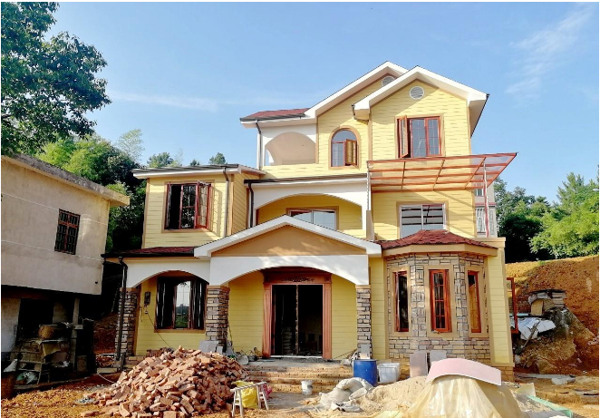 施工過程:地基建筑—鋼結(jié)構(gòu)主體—封OSB板—屋頂防水裝飾—室內(nèi)電路水路鋪設(shè)—外墻呼吸紙—擠塑板—外墻裝飾板—外墻涂料—室內(nèi)玻璃棉石膏板鋪設(shè)—室內(nèi)裝修。